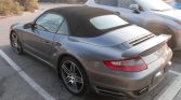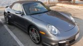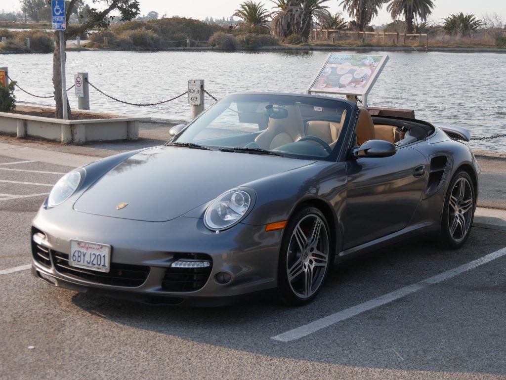 This 2008 Porsche 911 Turbo Cabriolet was first delivered to Carlsen Porsche in Redwood City, California, and it was purchased new by the seller and now has under 86k miles. It is finished in Meteor Grey Metallic over a two-tone black and Sand Beige interior and powered by a twin-turbocharged 3.6L flat-six driving all four wheels through a six-speed manual transaxle. Equipment includes a power-operated black soft top, 19″ wheels, fog lights, the Sport Chrono Package Turbo, heated and adaptive front sport seats, and Porsche Communication Management with navigation and a Bose surround-sound audio system. Service since 2018 included replacement of the water pump, drive belt, clutch components, front CV boots, tires, and brake pads and rotors.