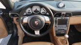The heated, power-adjustable, and adaptive front sport seats are trimmed in Sand Beige leather, and the color-coordinated carpets are protected by black floor mats. Black leather covers the upper dashboard, and additional amenities include automatic climate control, power windows, a wind deflector, cruise control, a dashboard-mounted stopwatch, and Porsche Communication Management with navigation and a Bose surround-sound audio system. The rear seat cushions have been recovered, and the shift knob and boot were replaced. A Tooki Bluetooth adapter and a mObridge iPod interface were installed during current ownership, and a blue iPod Nano is included in the sale.