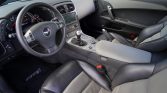The cabin features power-adjustable and heated seats upholstered in Dark Titanium leather with light gray inserts and ZR1 embroidery along with a matching dashboard, center console, and door panels. Amenities include a head-up display, an auto-dimming mirror, dual-zone automatic climate control, cruise control, and ZR1-branded door sill guards. The car features the 3ZR Premium Equipment Group, which consists of a navigation system, a Bose premium seven-speaker audio system, Bluetooth connectivity, and a power-tilting and telescoping steering column with memory settings.
