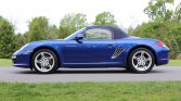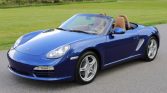 This 2009 Porsche Boxster is finished in Aqua Blue Metallic over Sand Beige leather and is powered by a 2.9-liter flat-six paired with a six-speed manual transaxle. Additional equipment includes the Sound Package Plus, a Pioneer touchscreen infotainment system, automatic climate control, a wind deflector, a blue convertible top, and 18″ Cayman S wheels.
