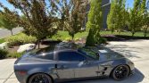 The car is finished in Cyber Gray Metallic and features a carbon fiber roof, hood, fenders, and rocker moldings as well as a polycarbonate window on the hood, xenon headlights, fog lamps, and aftermarket front and rear parking cameras. The seller notes that paint protection film has been applied to the front bumper cover, hood, fenders, and side mirrors. The rear and side windows have also been tinted.