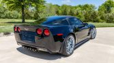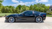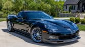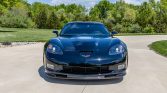 This 2010 Chevrolet Corvette ZR1 is powered by a supercharged 6.2-liter LS9 V8 paired with a six-speed manual transaxle and a limited-slip differential, and is finished in black over black leather. Equipment includes the 3ZR Premium Equipment Group, which added extended leather upholstery, a Bose audio system, power-adjustable and heated seats with memory settings, a power-telescoping steering wheel, Bluetooth connectivity, and navigation along with staggered chrome wheels, carbon-ceramic brake rotors with Brembo calipers, Magnetic Select Ride Control, and…