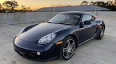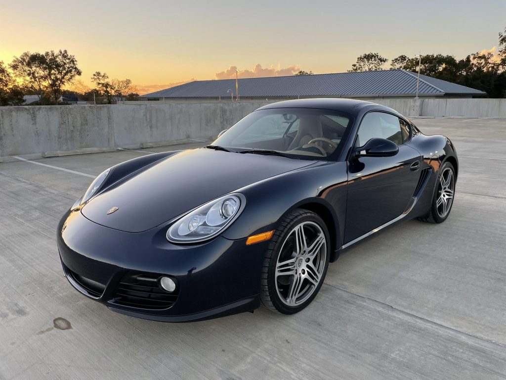 This 2011 Porsche Cayman is finished in Dark Blue Metallic over a Sand Beige leather interior and is powered by a 2.9-liter flat-six mated to a six-speed manual transaxle. Equipment includes split-spoke 19” Turbo wheels, fog lamps, heated and ventilated power-adjustable seats, a CD stereo, and automatic climate control. The spark plugs were replaced in 2017.