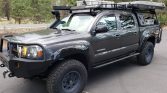 This 2011 Toyota Tacoma TRD Double Cab is finished in metallic gray over gray and is powered by a 4.0-liter V6 paired with a five-speed automatic transmission and a dual-range transfer case. Equipment includes front and rear locking differentials, Aluminess front and rear bumpers, a Warn winch, All-Pro skid plates, All-Pro Extreme sliders, a roof rack, a light bar, driving lights, a snorkel, a console safe, a CB radio, a CD stereo, cruise control, and air conditioning.…