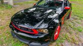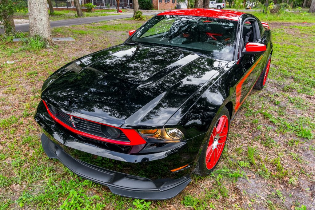 This 2012 Ford Mustang Boss 302 is one of 767 Laguna Seca editions built for the model year and is finished in black with red accents over charcoal cloth and Alcantara. Power comes from a 5.0-liter Road Runner V8 paired with a six-speed manual transmission, and additional equipment includes a Torsen limited-slip differential, Recaro seats, red 19” double-spoke wheels, front and rear spoilers, Brembo front brake calipers, and a CD Stereo. The car was reportedly purchased new…