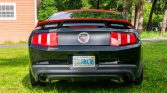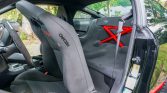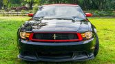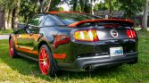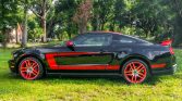 Staggered-width 19” double-spoke red-accented wheels are wrapped with Pirelli P Zero Corsa tires that measure 255/40 up front and 285/35 out back. A manually adjustable suspension and upgraded anti-sway bars were standard on the Laguna Seca Edition package, in addition to Brembo front brake calipers and Ford Racing brake ducts.