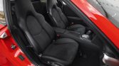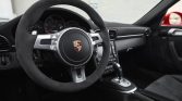 Center-locking 19″ RS Spyder wheels are finished in black with machined lips and wear Bridgestone Potenza RE050A tires measuring 235/35 up front and 305/30 at the rear. Braking is provided by red four-piston monobloc calipers over cross-drill rotors, and other standard equipment includes Porsche Active Suspension Management (PASM) with a ride-height reduction of 10 mm.