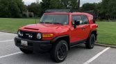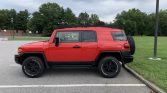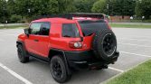 All of the 2012 Trail Teams Special Edition FJ Cruisers came from the factory finished in Radiant Red with a black grille, bumpers, lower cladding, and fender trim. Additional features include a Prinsu roof rack, rock rails, reverse-hinged rear doors, power-adjustable side mirrors, a swing-out rear door, a receiver hitch, and driving lamps mounted on the front bumper.