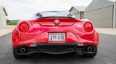 Dark 5-Hole forged wheels measure 18″ in diameter up front and 19″ out back and are wrapped in Pirelli P Zero tires measuring 205/40 and 235/35, respectively. Cross-drilled rotors and optional red-finished calipers with inset Alfa Romeo logos are fitted at each corner.