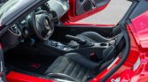 The bodywork is finished in Rosso Alfa and features a Launch Edition-specific front fascia as well as a carbon-fiber central tub, composite bodywork, and aluminum subframes. Additional equipment includes a carbon-fiber rear spoiler lip, bi-xenon headlights, side air intakes, carbon-fiber mirrors caps, LED tail lights, and dual chrome-finished exhaust outlets.
