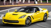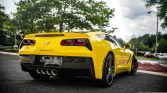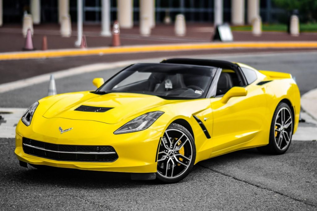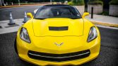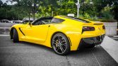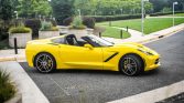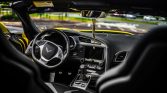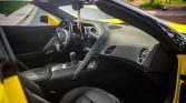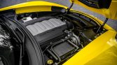 The car is finished in Corvette Racing Yellow Tintcoat (GC6) and features a one-piece visible carbon-fiber roof panel with body-colored surround and a carbon-fiber hood. Additional features include the Z51 aero package, xenon HID headlamps, heated mirrors, and a quartet of 4″ polished stainless-steel exhaust tips.