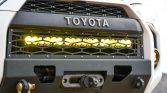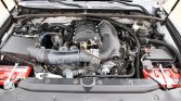 Power is sent to the rear or all four wheels through a five-speed automatic transmission, a dual-range transfer case, and a locking rear differential. The truck features a TRD-stamped front skid plate as well as rock sliders.