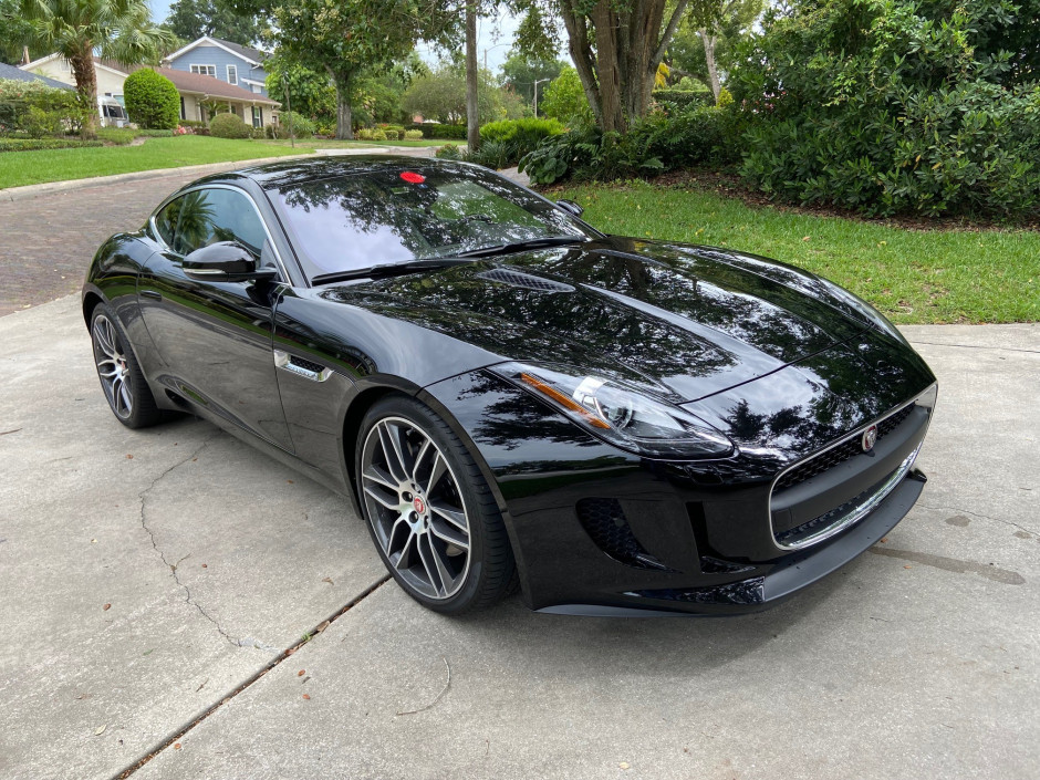 This 2017 Jaguar F-Type Coupe is finished in Ebony Black over Jet Black leather and suede upholstery and is powered by a supercharged 3.0-liter V6 paired with a six-speed manual transmission. The car was purchased new by the seller in 2016 from Jaguar of Greenville, South Carolina, and has remained registered in Florida. Features include 20″ multi-spoke wheels, HID headlights, keyless entry, power-adjustable performance seats, dual-zone automatic climate control, and an infotainment system with satellite radio and navigation.