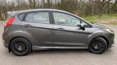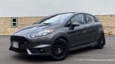 The car is finished in Magnetic gray and features ST-specific bumpers and rocker extensions along with a larger hatch spoiler than that of the contemporary Fiesta. Additional equipment includes automatic halogen headlights, fog lights, heated side mirrors, and aftermarket Rally Armor mud flaps.